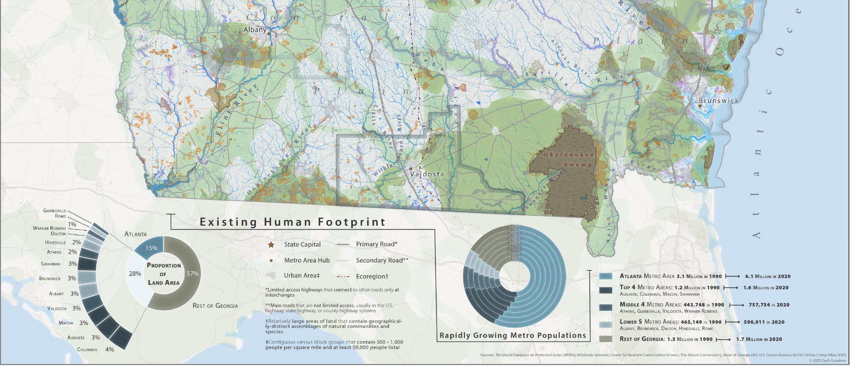 I am originally from the Piedmont of Northeast Georgia, but after finishing my undergraduate at the University of Georgia, I spent the better part of my twenties in the Intermountain West. During that time I became acutely focused on human-nature relations. Most recently, I earned my Master of Science in Environmental Studies and a GIS certificate from the University of Montana where I learned about the art of cartography and fell in love with making maps.